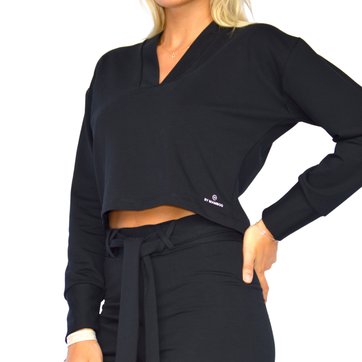 Liever een korte "crop" hoodie? Ook dan kan je terecht bij BY MAMBOO. Combineer deze crop hoodie met een leuke high waist broek en zeg hallo tegen je nieuwe favoriete outfit.